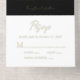 Elegant wedding invitation with your monogram initials inside a wedding crest, your first names, "Reception to follow" and "Rsvp" showcased in a chic script, your invitation details in classic serif typography, and a white tear-away RSVP postcard, all rendered in your choice of genuine gold, silver or rose gold foil on black and white backgrounds. If desired, you can adjust the size of the script for longer or shorter names by editing in the design tool.