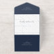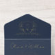 Elegant Crest Monogram Script Blue Wedding All In One Invitation