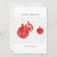 Featuring three beautifully illustrated red ornaments with intricate hand-drawn floral details, this non-photo Christmas card exudes a modern, simple yet classic charm. The ornaments hang gracefully against a soft snowflake background in light grey, making the design both festive and refined.