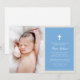 Elegant Cross Blue Photo Baptism Christening Invitation