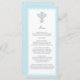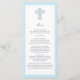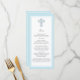 An elegant cross designed with swirling curls and fancy fleur de lis patterns, coordinates perfectly with our baptism, communion and confirmation invitations. Each line can be customised for your menu. Pretty blue cross design is available in matching stickers and postage as well.