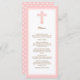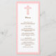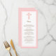 An elegant cross designed with swirling curls and fancy fleur de lis patterns, coordinates perfectly with our baptism, communion and confirmation invitations. Each line can be customised for your menu. Pretty pink cross design is available in matching stickers and postage as well.