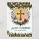 An elegant cross, illuminated by the soft glow of a lantern and candles, is beautifully framed by Christmas border leaves with ornaments and acorns on this greeting card. The design captures the light of Christ, a guiding force in our lives, bringing warmth and hope during the holiday season. The intricate details of the lantern and the flickering candles enhance the serene and sacred ambiance of the card. With space on the back for your personal message, this card is a perfect way to celebrate the sacredness of Christmas and remind recipients of the divine love and light Christ brings.