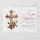 Elegant Cross with Pink Flowers Easter Party Postcard