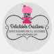 © 2020 Socialite Designs Inc. Elegant bakery packaging seal has an elegant cupcake design and a doodle banner frame. The background has an elegant grey pattern. Use these stickers to seal your baked goods boxes or pouches.