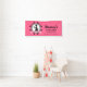 © 2019 Socialite Designs Inc. Our bakery banner incorporates a woman silhouette, holding a cupcake on a tray, with an elegant scroll border and ribbon. The background has a pink striped pattern. All design elements can be moved or resized.