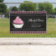 © 2021 Socialite Designs Inc. Elegant pink cupcake bakery design canvas banner for your baking business to use at farmer's market or store.