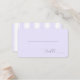 This elegant place card features a minimalist design with a soft lavender background, creating a serene and sophisticated atmosphere. The layout includes two simple lines for customization, accompanied by the word "table" in an elegant cursive font, adding a touch of refinement. Perfect for weddings, formal dinners, or any special occasion, this card combines style and functionality to enhance your table setting. Its clean and modern aesthetic makes it versatile for various events, ensuring a polished look wherever used.