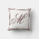 Enhance your home decor with our white customizable throw cushion. Adorned with a classic monogram in burgundy, this pillow allows you to personalize every aspect, including the pillow's color, font, and font color, ensuring it aligns seamlessly with your style preferences. Infuse your living space with a touch of personalized elegance and sophistication with this luxurious accent piece. For durable patio and porch decor, choose the outdoor fabric option.