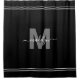 Create Your Own Custom Elegant Black and White Monogram Shower Curtain. This chic and stylish shower curtain adds a luxurious touch to any bathroom with a custom monogram design on a sleek black background, featuring a bold grey initial letter and a flowing white script name for a personalised, sophisticated look. The curtain is accented with double white stripes at the top and bottom, adding a refined detail to the design. All colours are fully customisable to suit your style and bathroom decor. Perfect for those who love a touch of elegance, this monogrammed shower curtain makes a thoughtful gift for weddings, housewarming parties, birthdays, or any special occasion. Combining style with practicality, this unique shower curtain adds a timeless, personalised flair to any bathroom.