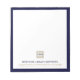 Stay organised in style with our Elegant Custom Notepad with Navy Blue Frame. This notepad features your company's logo, name, address, and contact information framed in a sophisticated navy blue border around a crisp white background. Whether you're jotting down important notes, messages, or to-do lists, this notepad exudes professionalism and attention to detail. It's a versatile addition to your office supplies, perfect for meetings, memos, or promotional giveaways. Elevate your brand's image with this tailored notepad that combines function and elegance.