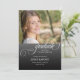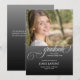 Announce your graduate's achievement in style with this beautifully designed graduation announcement card, featuring a photo of your choice and the word "graduate" in elegant calligraphy script. The soft black gradient background adds a touch of sophistication, making it the perfect backdrop for celebrating this unforgettable milestone. Easily personalise with her name, school, degree, graduation year, as well as a heartfelt message. A chic and meaningful way to share the joy with family and friends.