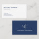 Elegant Custom Silver Monogram Navy Blue Business Card