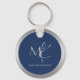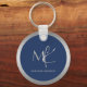 Elegant Custom Silver Monogram Navy Blue Employee Key Ring