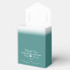 Elegant Custom Teal Wedding Heart Thank You Favour Box. Princess style design with calligraphy hearts and line art. The names of the Bride and Groom are beautifully displayed on the front, along with the date. The Thank You note can also be personalised. The background colour can easily be changed by clicking the "Customise" button.