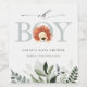 Elegant Cute Boho Lion Foliage Oh Boy Baby Shower Wine Label