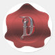Elegant red wax seal look sticker with graphics of an ornate silver tone and red monogram letter D, in the middle. Lovely finishing touch to special occasion invitations and greeting card envelopes.