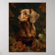 Elegant Dachshund with Autumn Leaves | Floral Pet Poster