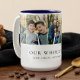 Celebrate Dad with this elegant Modern Daddy photo collage two-tone coffee mug, designed to beautifully showcase five cherished memories in a stylish, meaningful way. Featuring a clean and minimal collage layout with space for five photos, this design keeps the focus on your most heartfelt moments while maintaining a modern, refined aesthetic. The word “DADDY” is displayed across the photos in sophisticated typography, with the first letter styled in elegant calligraphy and a subtle heart detail, paired with a timeless serif font for a polished look. The phrase “our whole world” can be personalized, along with family members’ names and your family last name, making this mug truly one of a kind. Perfect for Father’s Day, birthdays, first Father’s Day, or celebrating new dads, this thoughtful keepsake blends sentiment and everyday function. Ideal for coffee, tea, or daily use, it’s a meaningful gift he’ll reach for and appreciate every day. Personalize it with your favorite photos and a heartfelt message to create a lasting memory he’ll treasure for years to come. Original design and layout by Moodthology Papery.