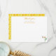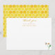 A pretty bridal shower thank you flat note card with a single daisy flower and hovering bee. "thank you" is in yellow modern calligraphy font and a watercolor honeycomb pattern on the reverse.