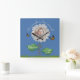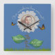 Elegant Daisy Blue Floral Cute Baby Photo & Name Square Wall Clock