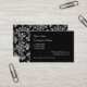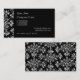 Elegant Daisy Damask in White on Black Custom Business Card
