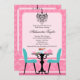 Elegant Damask and Chandelier Pink Aqua Tea Party Invitation