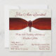 Lovely off white damask birthday party invitations, with graphics of a red damask ribbon, across the middle. A large oval ruby and two small round diamonds decorate the ribbon. Red text is fully customisable to suit your party needs. Very lovely invitation. Matching envelopes available.