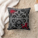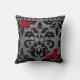 A beautiful dark grey and black damask pattern with blood splatters. Shown here on a square throw pillow. This would go well with a spooky vampire Halloween theme.