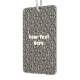 This car air freshener has an elegant damask pattern in black and white with fancy white scrolls. Customise your text with the template.