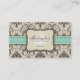Beautiful Vintage Damask Brown, Green and Beige Business Cards. Great for Interior Designer and those in the Salon and Spa Business.