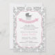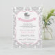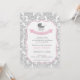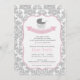 Elegant Damask & Pram Baby Shower Invitation with a pink and grey colour scheme