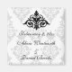 Pretty Save the Date magnet. The lovely damask pattern in the background is given some flair by the black decoration at the top. A great reminder for all your family and friends.