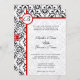 Elegant Damask Side Borders Red Trim Wedding Invitation
