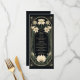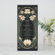 This sophisticated wedding menu card features an intricate Art Nouveau floral design with soft cream flowers set against a deep black background. The vintage botanical details and elegant gold accents create a timeless and romantic aesthetic, perfect for gothic, bohemian, or classic weddings. Designed to complement an elegant tablescape, this menu adds a refined touch to any reception. Customise it with your wedding menu for a seamless and stylish dining experience.