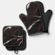 Elegant Dark Black Red Marble Oven Mitt & Pot Holder Set
