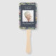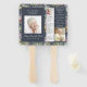 Elegant Dark Blue Floral 3 Photo Funeral Program Hand Fan