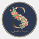 Elegant Dark Blue Gold Floral Monogram Letter S Classic Round Sticker