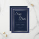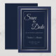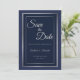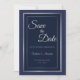 Elegant Dark Blue Silver Border Wedding Save the D Date