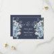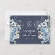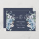 Simple modern dark blue & white floral “Save the Date” card. Names are done in elegant white script. Perfect for that spring, summer, fall or winter wedding.