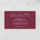 These modern elegant beauty business cards are great for a florist, beautician, wedding planner, and others! Burgundy flowers frame this simple classic design.