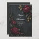 Create an impression of luxurious mystery with this stunningly sophisticated invitation design. The artwork features a deep, textured charcoal background that sets a moody and dramatic stage for the botanical elements. Unlike other designs, this layout incorporates shimmering metallic gold leaves intermingled with the dark foliage, adding a radiant, magical contrast to the deep burgundy and wine-colored roses. A thin, simple geometric line frame in a matching gilded tone outlines the design, providing a modern and refined structure that keeps the focus on the opulent floral corners. This elegant and moody aesthetic is a flawless choice for a formal winter wedding, a "Golden Age" themed party, or a sophisticated evening gala. You might also select this unique style for a milestone golden anniversary dinner, a high-end corporate holiday invite, or a romantic engagement announcement. This decorative gilded floral border is also perfectly suitable for luxury salon price lists, boutique jewelry business cards, or dignified memorial service programs.