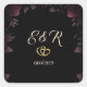 Elegant Dark Burgundy Roses Black Wedding Square Sticker