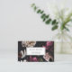 Elegant floral business card design features ivory roses, blush pink peonies, and deep burgundy flowers on a dark and dramatic plum purplebackground. Add your name or business name in modern lettering, overlaid on a white element in the center. Personalize the reverse side with your contact information.