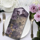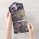 Introducing our gothic themed wedding invitation featuring a dark purple and black floral background. The top of the invitation can be customised with a photo to make this invitation uniquely yours. This invitation is perfect for couples seeking a gothic aesthetic for their special day. Included is a traditional paper RSVP, so with the all-in-one design, guests can easily tear away the RSVP section and mail it back. Additionally, we've provided space for email and website information for RSVPs, ensuring a seamless and convenient RSVP process. There is a transparent lavender overlay situated over the photograph to better blend it into the colour scheme of this invitation.