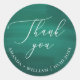 Elegant script wedding thank you sticker with in dark green emerald, deep sea green colours. Suitable for summer woodland / forest or greenery wedding theme.