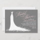 Elegant Dark Grey Pink Wedding Gown Bridal Shower Invitation