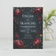 Elegant Dark Navy Burgundy Floral Golden Wedding Invitation