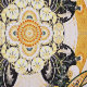 Modern conventional art nouveau style pattern in warm golden brown, yellow and orange tones with natural botanical and floral elements for dramatic and elevated accent in modern décor.