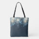 An elegant dark teal bokeh all-over-print tote bag with glamourous evening sparkle lights that seem to glow with luxury. Personalise by adding the name of the sophisticated woman. Flat printed image, NOT reflective.